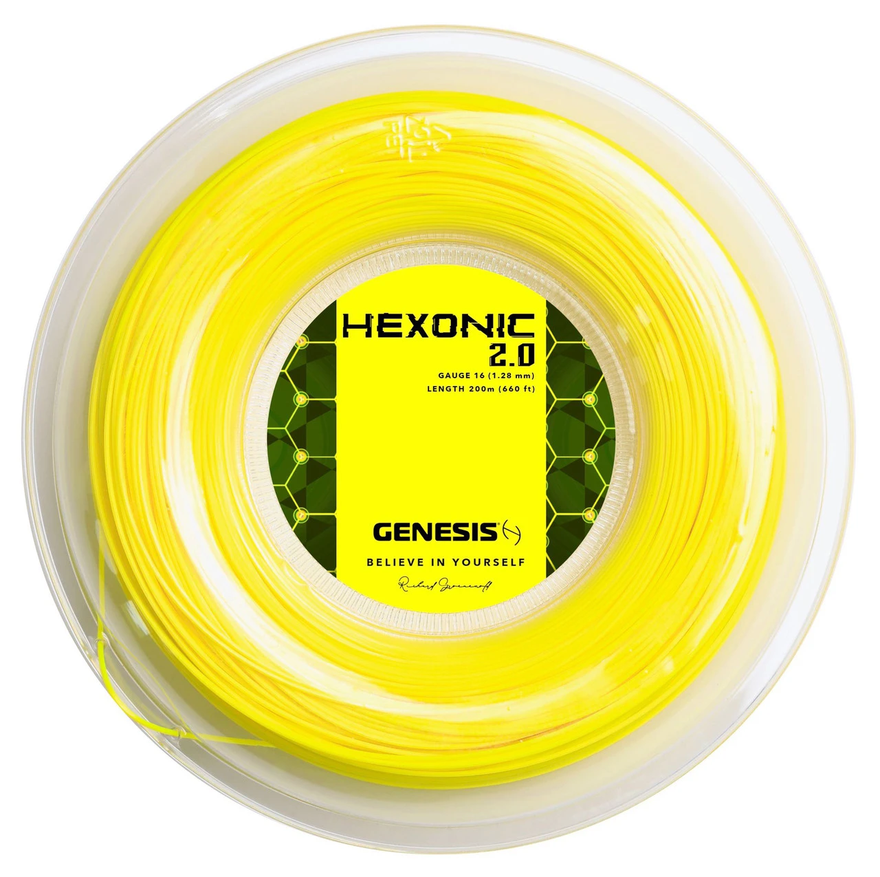 Genesis Hexonic 2.0 is a co-polyester monofilament string with a hexagonal profile to offer excellent spin potential and ball bite. High levels of tension maintenance, together with excellent durability.