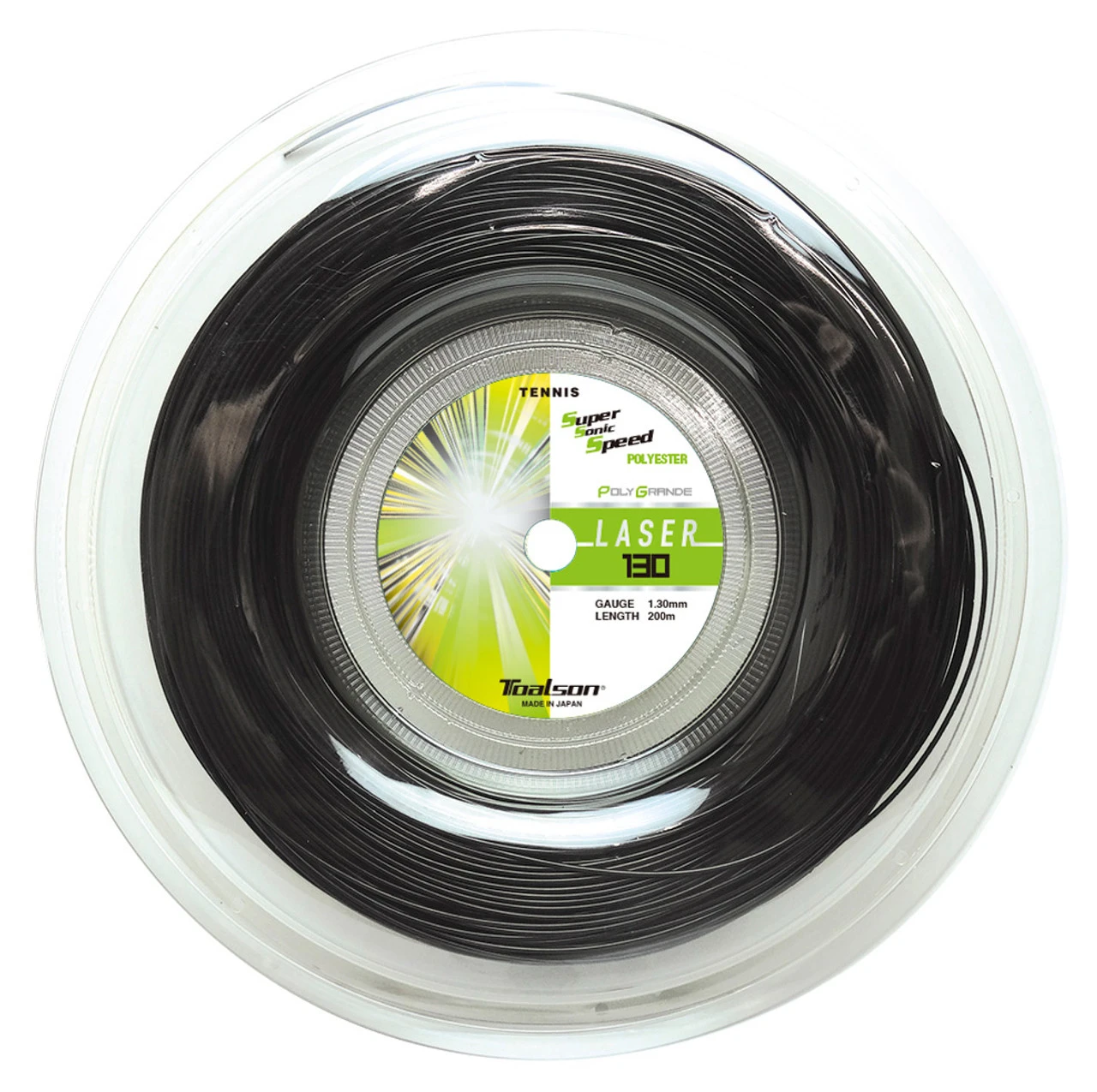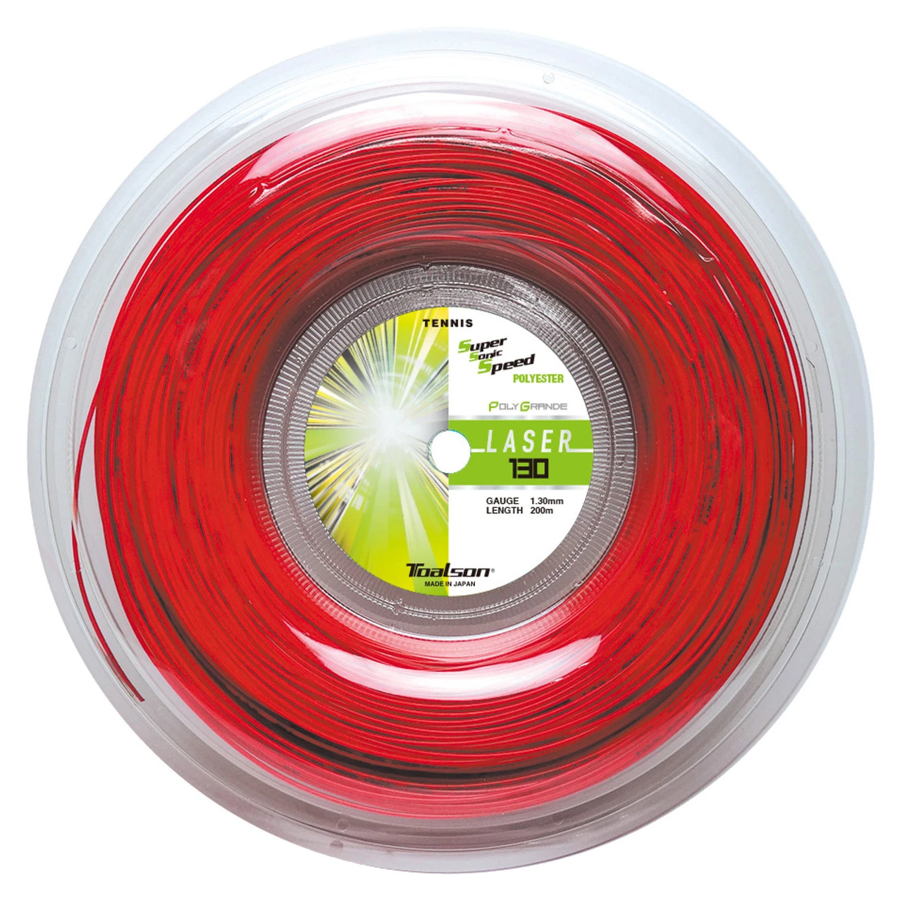 Toalson PolyGrande Laser 16 1.30mm 200M Reel strings approximately 18 racquets.
